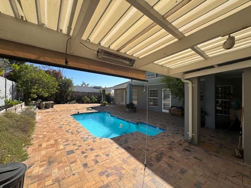 Relaxed coastal living in West Beach, Blouberg — poolside entertaining with covered braai and separate one-bedroom flatlet. Five bedrooms, three bathrooms, double garage.