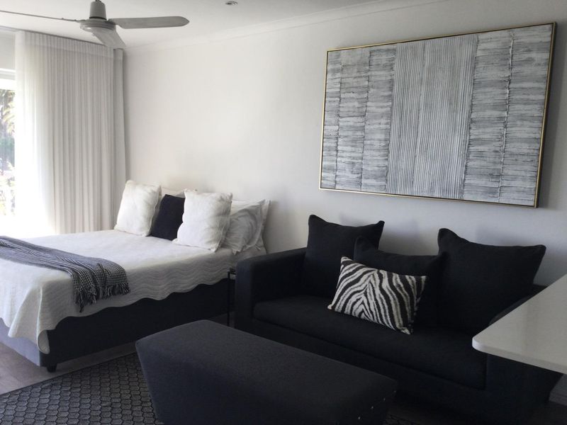 Relaxed ground-floor living with a private stoep opening onto communal outdoor space, cleverly designed kitchen and renovated walk-in shower. One bed, one bath; on-street parking.