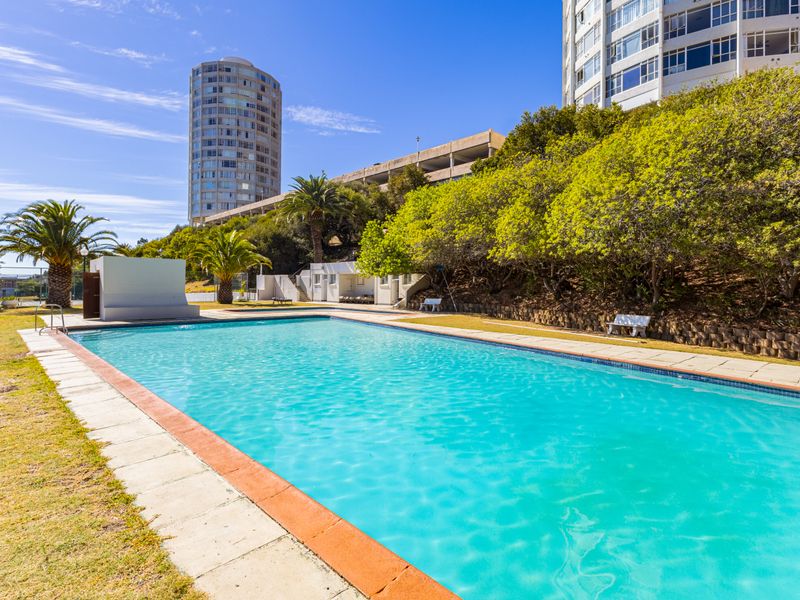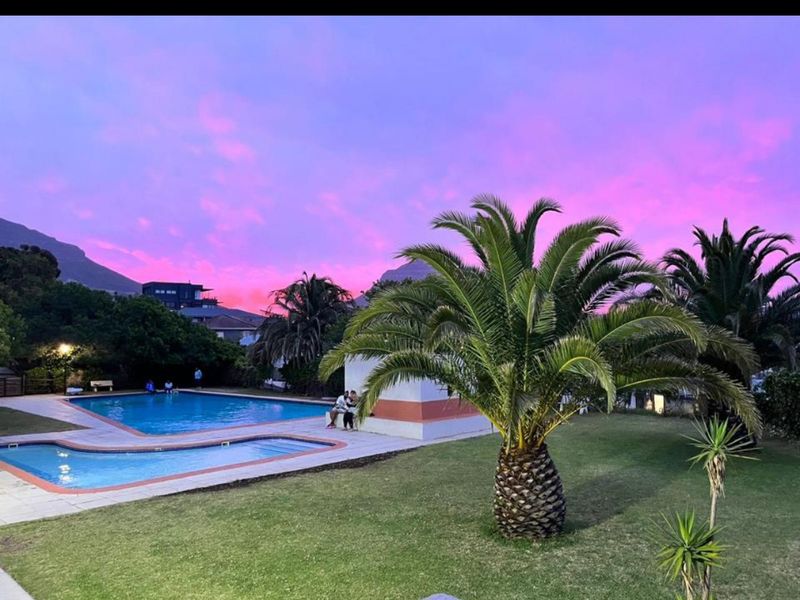 Wake up to sweeping Table Mountain sunrises in Vredehoek, enjoy shared pool and braai areas at iconic Disa Park; fully furnished 2-bed, 1-bath apartment with covered parking.