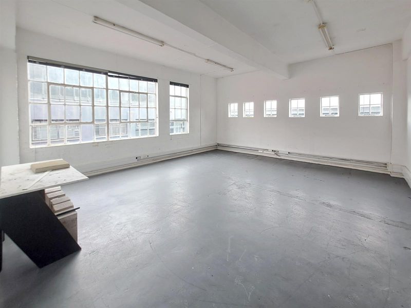 Thrive in Woodstock Exchange's creative hub, minutes from Cape Town CBD; bright 140m² open-plan studio featuring full backup power for uninterrupted business operations.