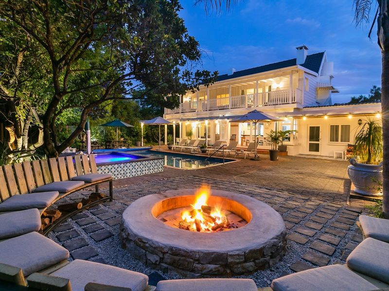 Gather family and friends for Leisure Island living in Knysna, with expansive entertainment areas, outdoor bar and wood-fired hot tub, large pool and eight ensuite bedrooms.