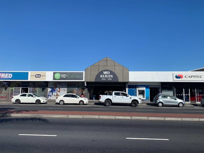Build your brand in the heart of bustling Kuilsriver on Van Riebeeck Road — high visibility opposite McDonald's and Capitec, air-conditioned tiled showroom with arcade access and ample parking.