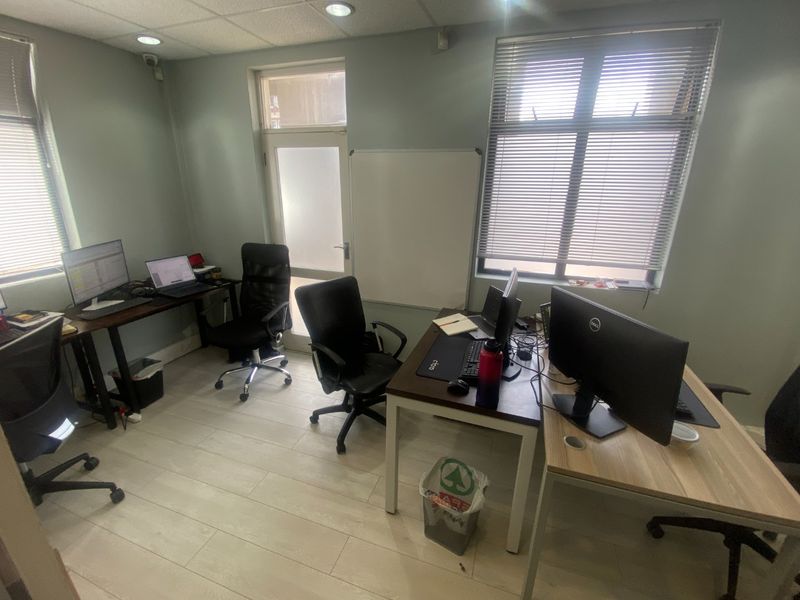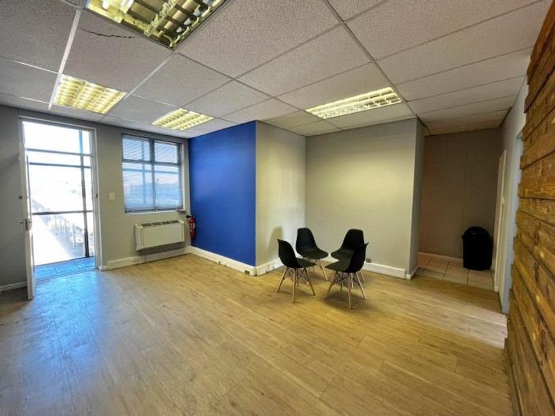 Work in a secure, park-like Millennium Business Park setting with easy access to Century City amenities; ground-floor 100m² office features private office, kitchen, and full backup power.