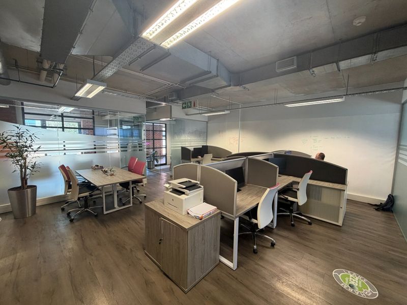 Join Century City's dynamic business community with an upmarket, fully fitted 621 m² first-floor office featuring an upstairs breakaway entertainment area—ideal for collaboration and client hospitality.