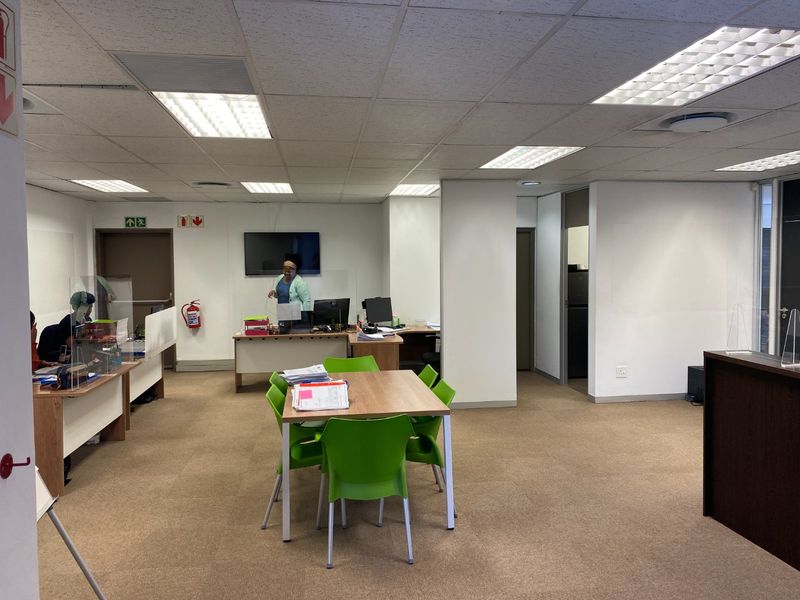 Work where culture meets convenience in Grand Central precinct, steps from Bootleggers, Brick Lane and Intaka Island. First-floor office with wrap-around windows, private balcony, solar backup.