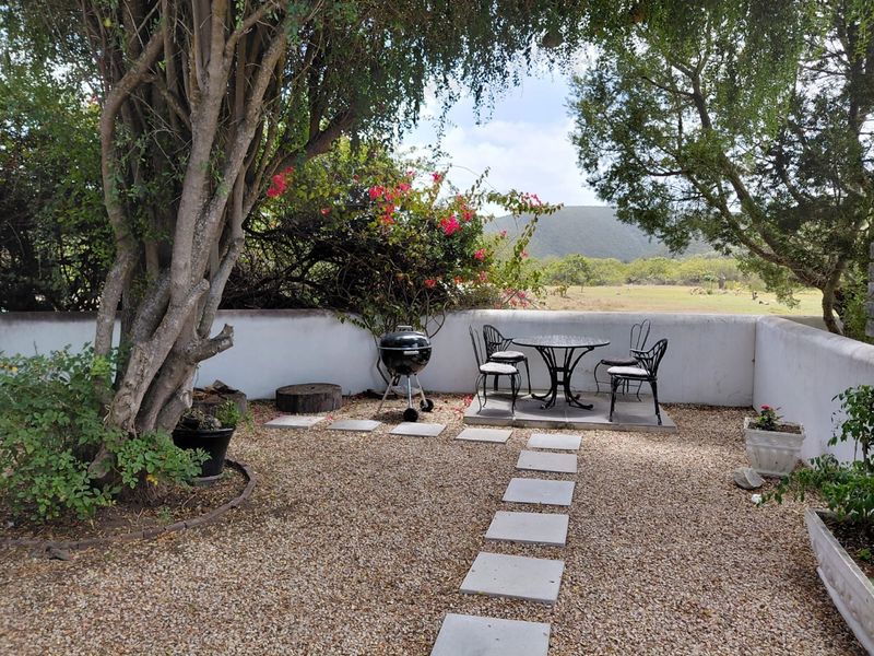 Serene Matjesfontein Estate retreat with Keurbooms River valley views and springbok grazing; fully furnished bachelor with private open-air entertainment area, one bedroom, one bath, parking.