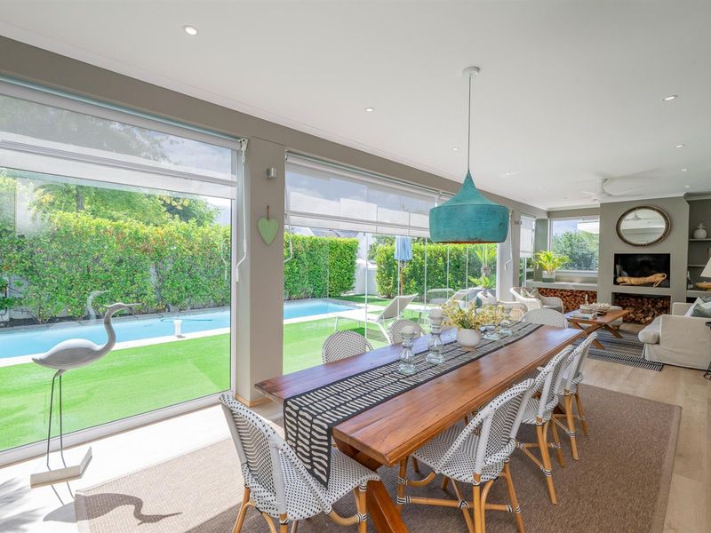 Golf-estate living with vineyard views at De Zalze: private heated pool and sunroom overlooking a secluded garden, three en-suite bedrooms and versatile entertaining spaces; available for June 2026 short-term.