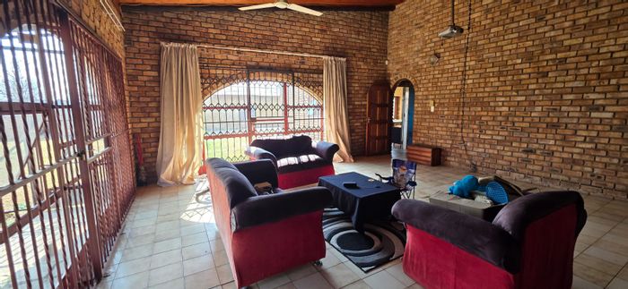 Spacious plot ideal as guesthouse, Airbnb or function venue — massive built-in bar, huge kitchen, dam with fruit trees, three boreholes and 3‑phase power. 4 beds, 5 baths, double garage, 4‑car carport.