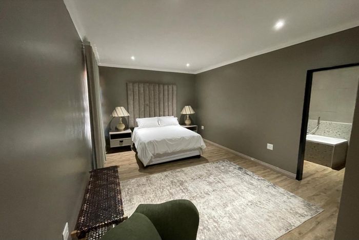 Escape to forest-edge living in Magoebaskloof with panoramic mountain views and private balcony; modern two-story farmhouse on 8.6ha, four bedrooms, greenhouses for nursery or aquaponics.