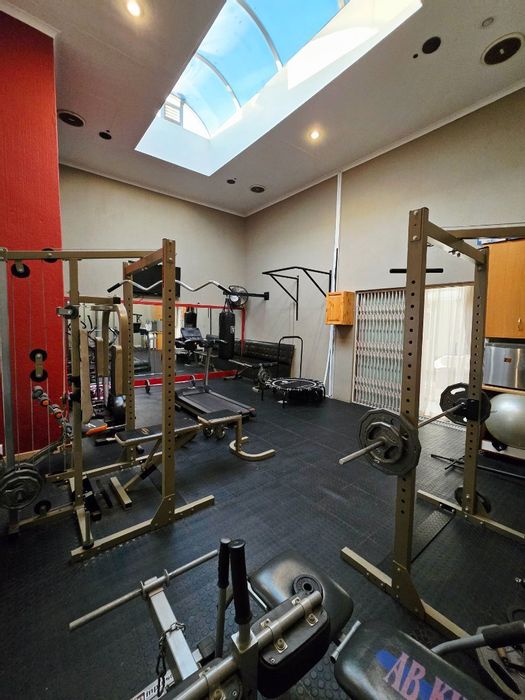 Entertainer's country retreat in Wilkoppies, Klerksdorp — sprawling 1-hectare grounds with development potential, private cinema patio with dual braais and 7-seater jacuzzi; five beds, three baths, six garages.