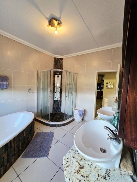 Relaxed country living with Klerksdorp convenience on 3.1 hectares, featuring a covered outdoor entertainment area with built-in braai and pool, plus four en-suite bedrooms.