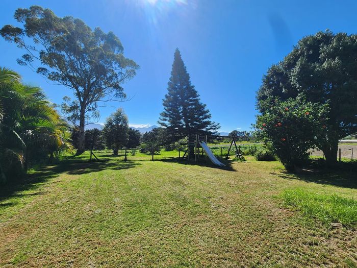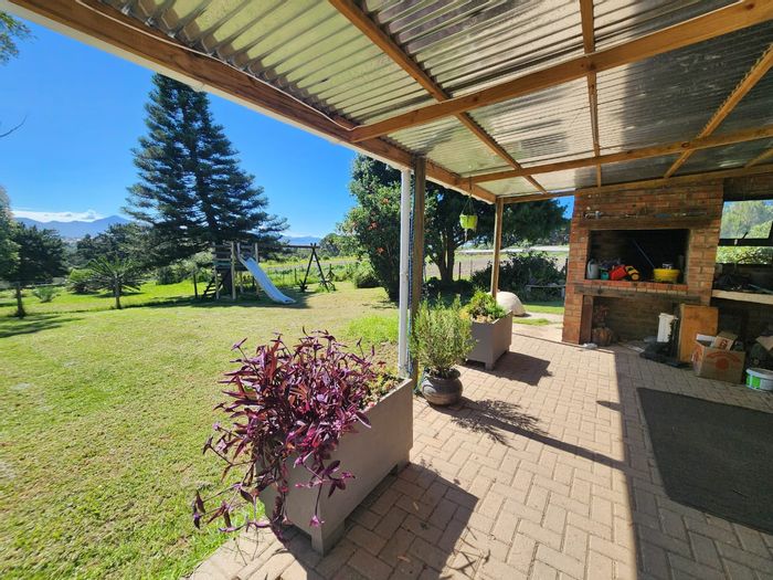 Peaceful country living on 2.8 hectares near the Outeniqua Mountains, with walking trails through manicured gardens and an entertainment room overlooking sweeping mountain views.