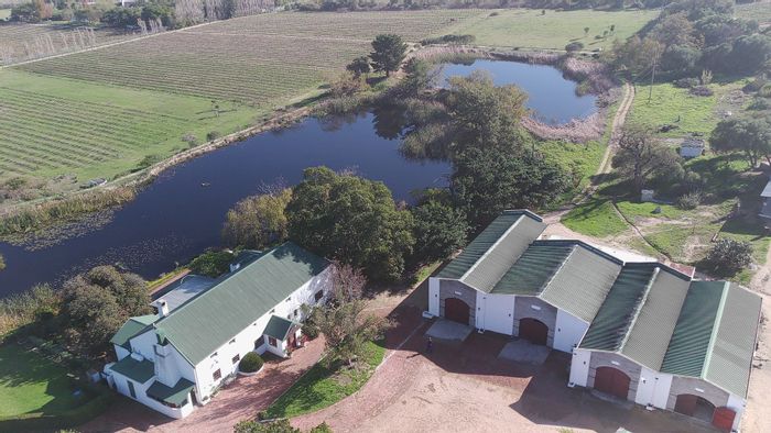 Near Pearl Valley and Val de Vie, 23-hectare Paarl farm with 5.7ha trellised vines, 8ha irrigation network and Berg River water rights — main house and workshop.