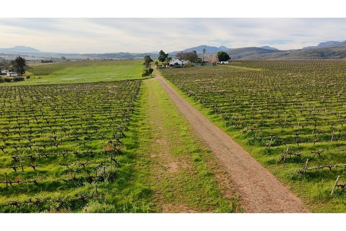 Estate living on Paarl's edge with established vineyards and guest-house potential; spacious five-bedroom homestead, tennis court and extensive sheds, plus irrigated lucerne and worker cottages.Rural retreat on Paarl’s outskirts with irrigated vineyards and large dam for recreation; three-bedroom farmhouse, storerooms and productive land ideal for diversified crops.Working farm on Paarl fringe offering lucern fields, open paddocks and panoramic views; four-bedroom house, sizeable shed and labor cottages — ideal for continued vineyard and fodder production.