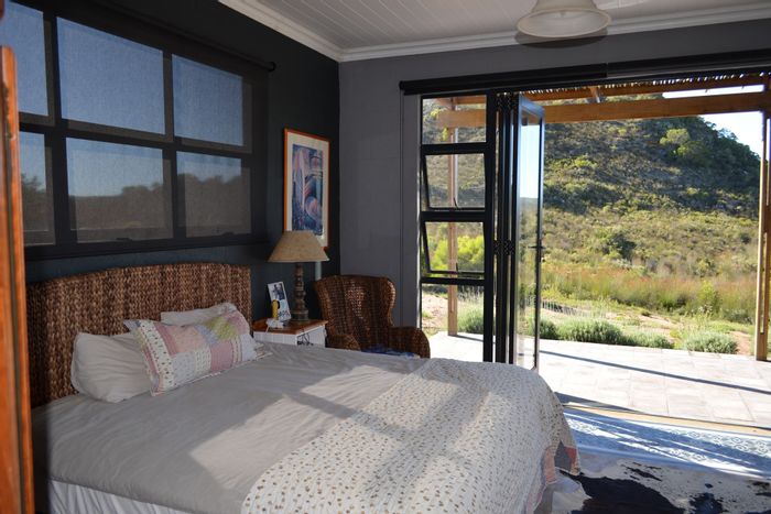 Off-grid farming lifestyle between Still Bay and Gouritsmond with Langeberg mountain and distant sea views, expansive 941m² home featuring an indoor heated pool — five beds, three baths.
