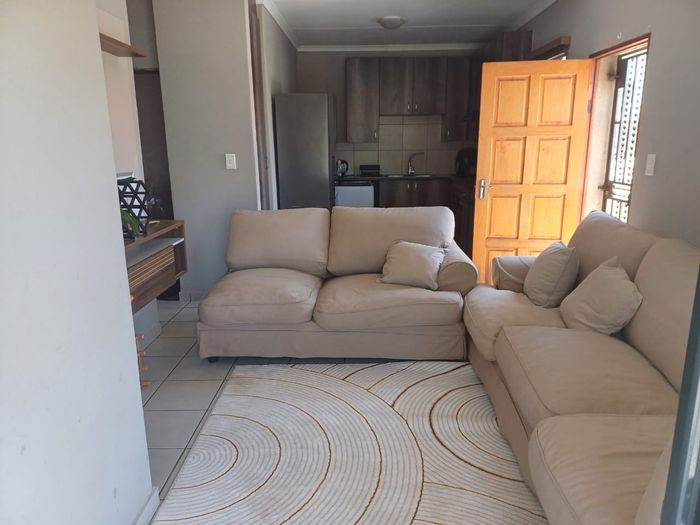 Secure gated community living with open-plan kitchen-lounge, two generous bedrooms with built-in cupboards, one bathroom and two covered parking bays — ideal for first-time buyers or investors.