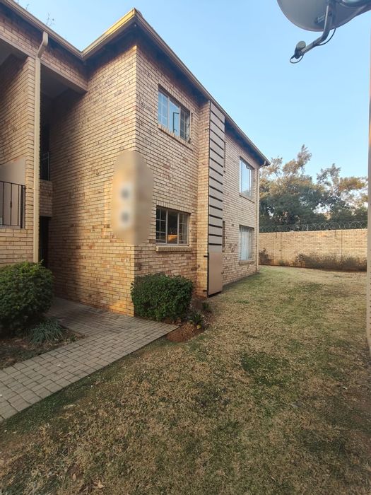 Sunny corner unit in prime Vanderbijlpark, offering generous open-plan lounge and kitchen, private patio and main en-suite — two bedrooms, two bathrooms and covered parking.
