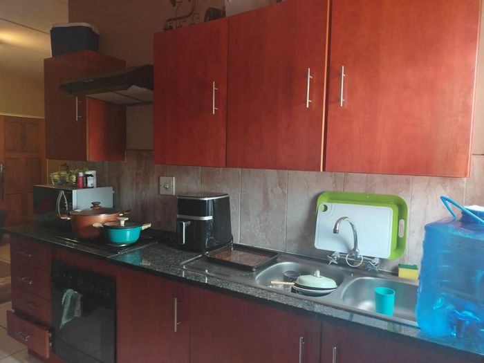 Serene family living in Waterval East, Rustenburg, with a landscaped garden and modern kitchen perfect for entertaining; three bedrooms, two bathrooms and covered parking for two.