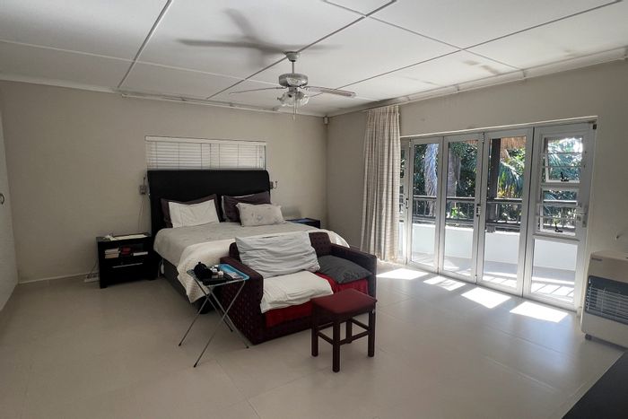 Entertainer's oasis in a serene up-market neighborhood, featuring an under-the-thatch lapa and sunlit pool deck with built-in braai. Includes four bedrooms, three bathrooms and three flatlets.