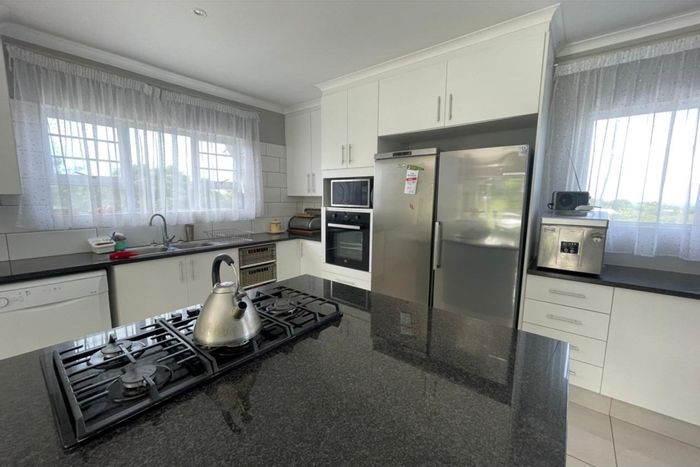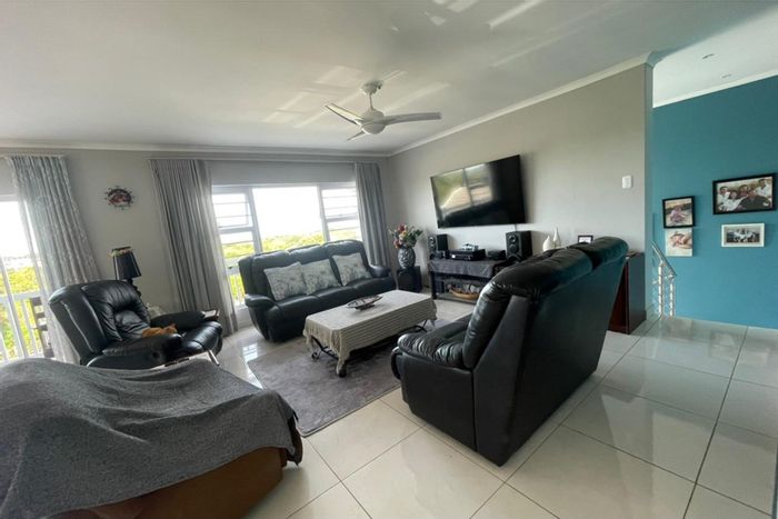 Entertainer's haven in Gonubie's upper avenues with seamless indoor-outdoor flow to an undercover braai and ocean glimpses; modern kitchen, separate granny flat for rental income. Four bedrooms, three bathrooms.