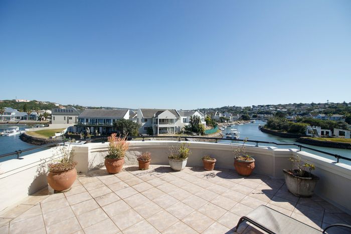 Coastal entertaining lifestyle at Royal Alfred Marina, Port Alfred — panoramic Kowie River views and private jetty, spacious open-plan living, separate apartment, solar, six bedrooms and six bathrooms.