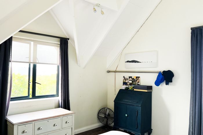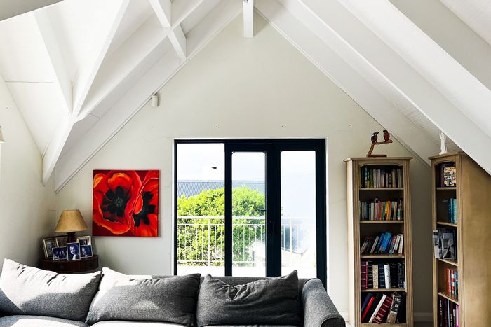 Port St. Francis coastal retreat with sunlit north-facing open-plan living, stacker doors to a sheltered patio and built-in braai; loft with mountain views. Four beds, four baths.