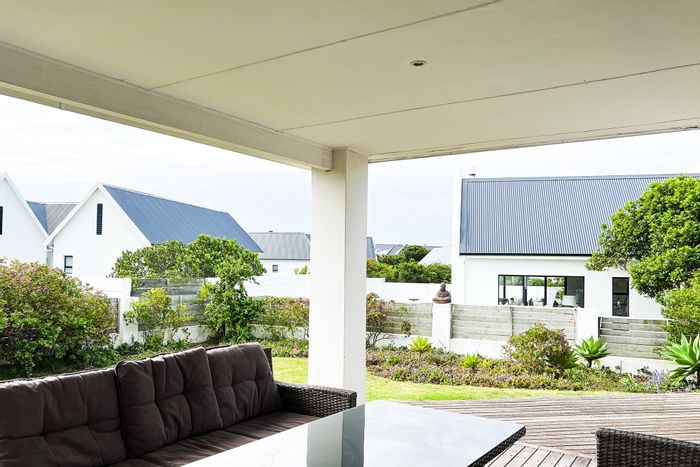 Enjoy golf-front living in St Francis Links, sunlit open-plan spaces spilling to a level garden and undercover patio. Modern kitchen with indoor braai; four beds, five baths, garage.
