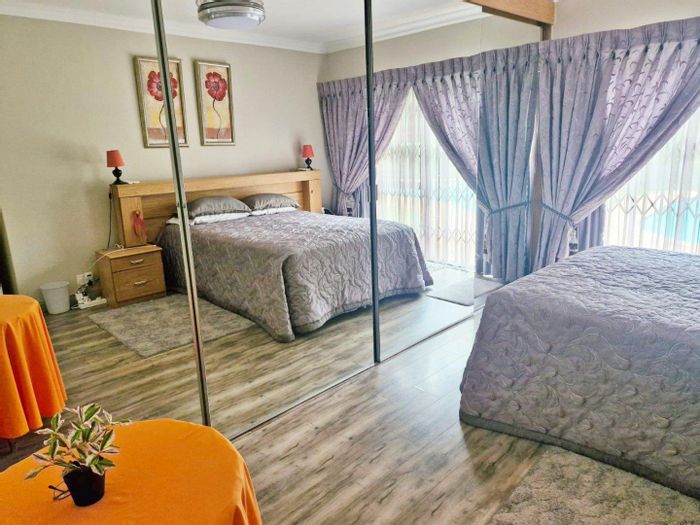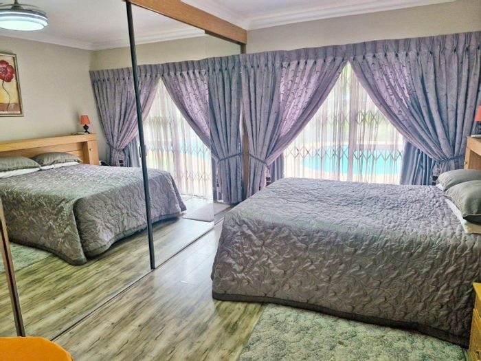 Family-focused living in sought-after Sasolburg — leafy garden and heated pool with two poolside bedrooms. Expansive entertainment area with built-in braai, five bedrooms, triple carport and garages.