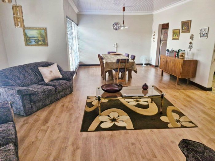Effortless family living in a prime family-friendly neighbourhood, featuring an open-plan lounge with fireplace, covered lapa with built-in braai, manicured garden and pool — 4 beds, 2 baths, double garage.