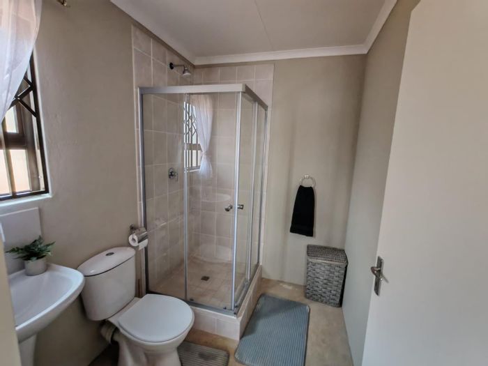 Contemporary double-storey living in Leopards Rest Estate's secure, family-friendly community — open-plan kitchen with gas stove and built-in braai, private landscaped garden, inverter-plus-solar backup. Three bedrooms, 2.5 bathrooms, double covered carport.