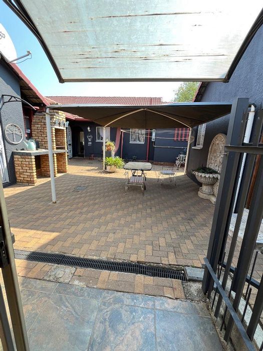 Host unforgettable gatherings in Brackendowns with expansive entertainment spaces, a thatched covered patio with built-in braai and pool, plus a flatlet and four bedrooms, two bathrooms.