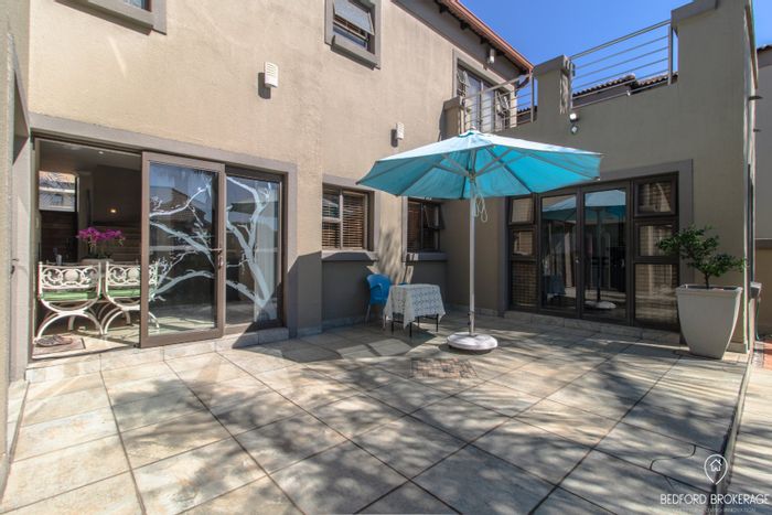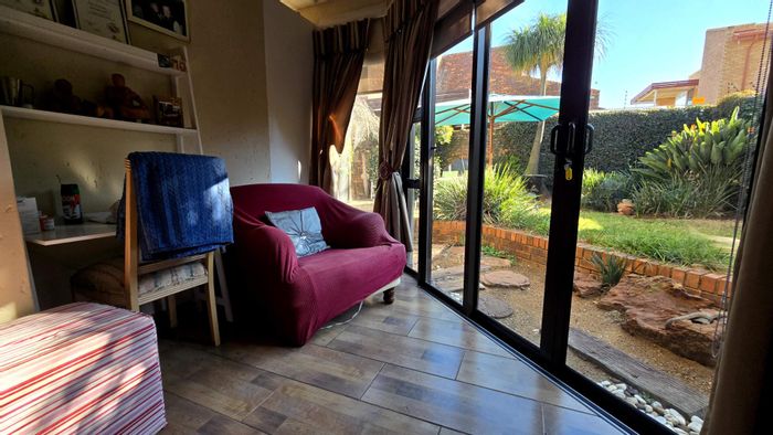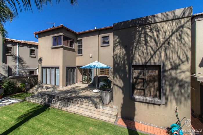 Entertain year-round in this open-plan family home within a peaceful, well-maintained complex — sunroom with built-in gas braai, double-volume staircase, three bedrooms, four bathrooms, double garage.