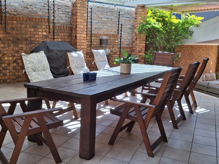 Family-focused cul-de-sac living in Meyersdal with a north-facing garden and solar-heated marbelite pool. Light-filled double-volume entrance, three bedrooms, 2.5 baths.