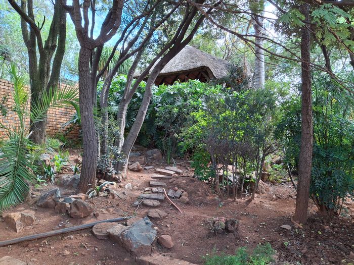 Relaxed family living in a sought-after, secure neighbourhood with established gardens, sparkling pool and cozy boma for entertaining — four bedrooms, three bathrooms and four-car garage.