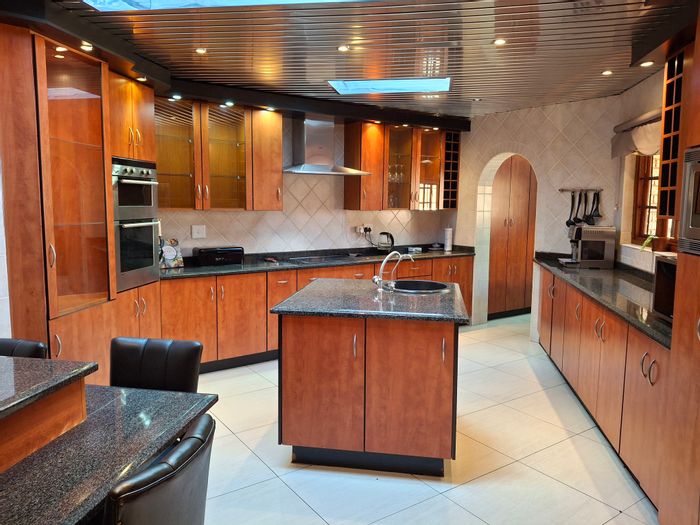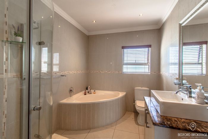 Entertainer's paradise offering privacy in a quiet cul-de-sac within a 24-hour security estate, featuring a rooftop entertainment room with panoramic views, five bedrooms and triple garage.