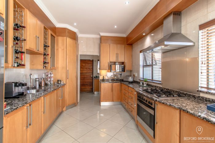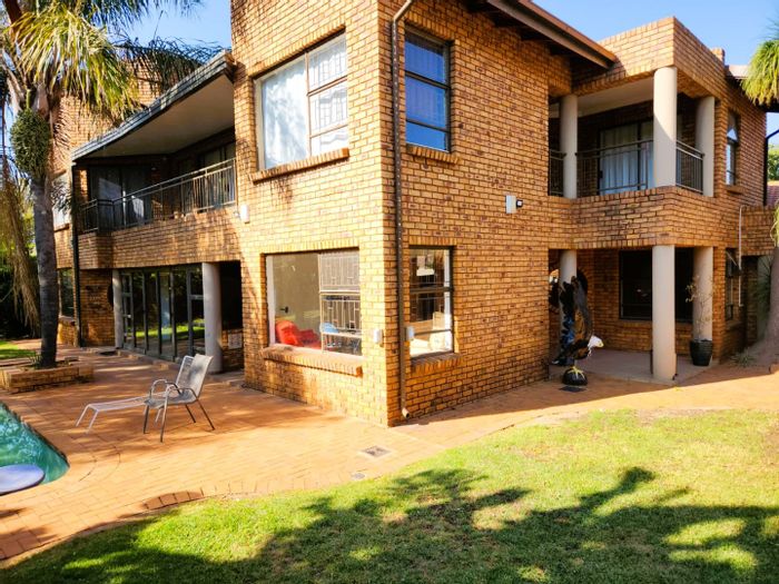 Entertain effortlessly in an exclusive, access-controlled Meyersdal enclave with sweeping views from an upstairs entertainment balcony, private pool and garden — five bedrooms, three bathrooms, three garages.