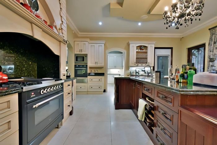 Resort-style living in Alberante Security Estate with flexible entertaining spaces, a year-round indoor pool, covered braai terrace and generous garden — six bedrooms, six bathrooms, double garage.