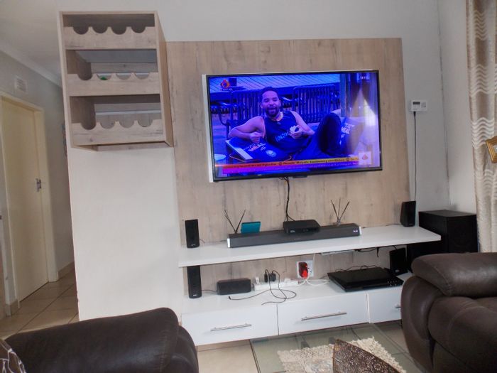 Family-focused suburban living in Sky City, Alberton — leafy parks, jogging trails and quick R59 access. Remodelled open-plan Tuscan-roof kitchen/living room; three bedrooms, two bathrooms.