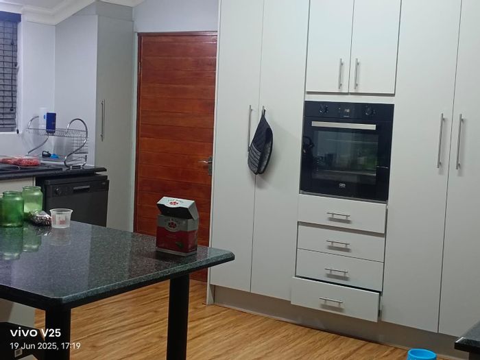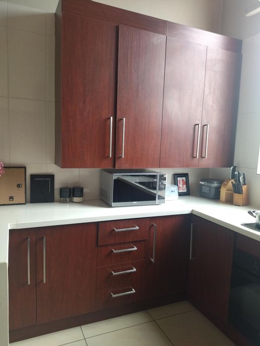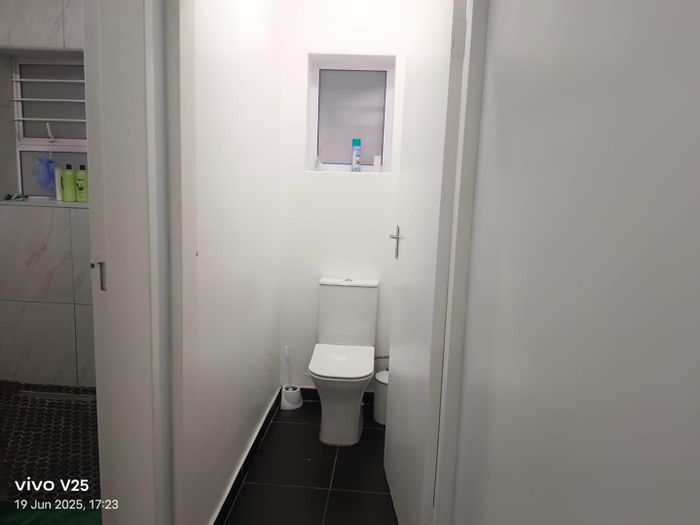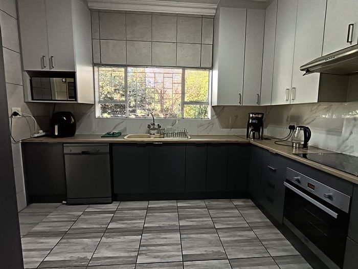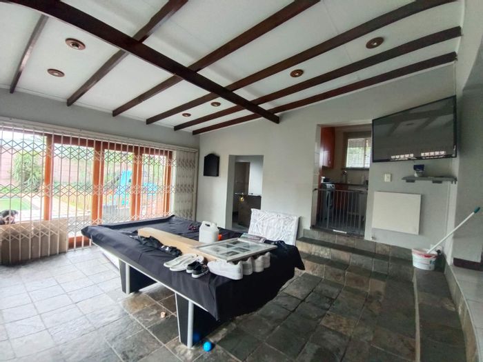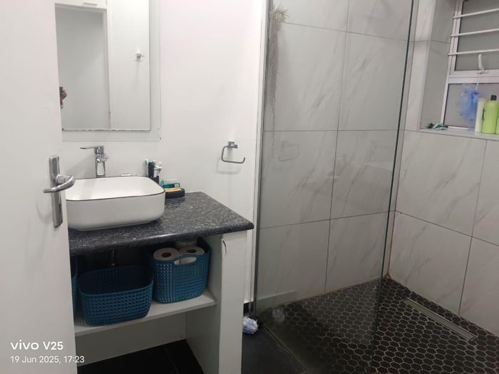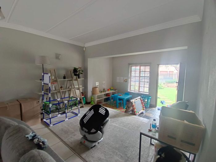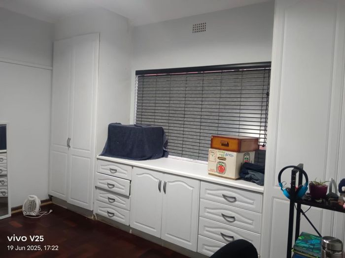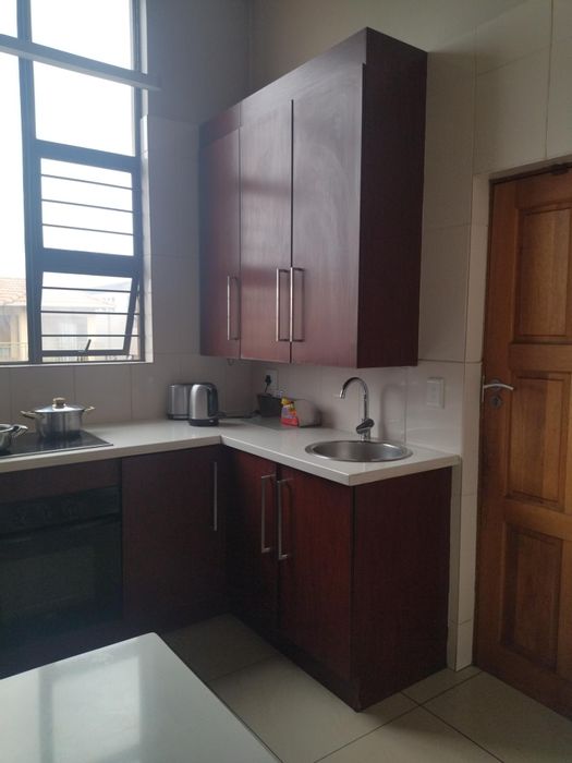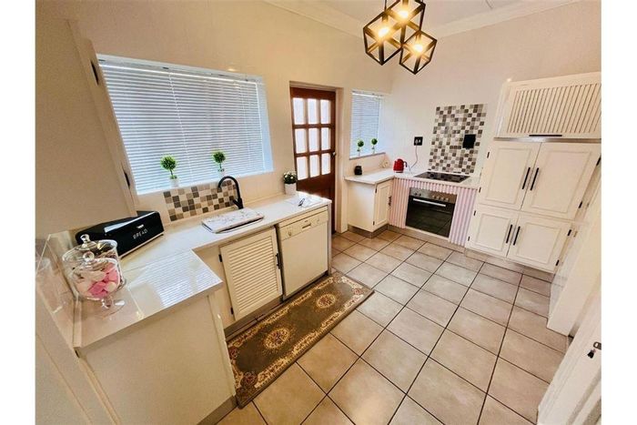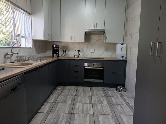 Relaxed South Crest living with leafy outlooks and easy indoor-outdoor flow; open-plan granite kitchen and private garden ready for a lapa and swimming pool. Three bedrooms, two bathrooms.