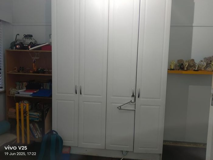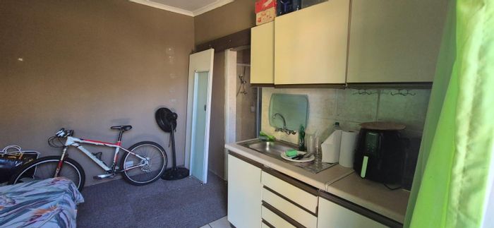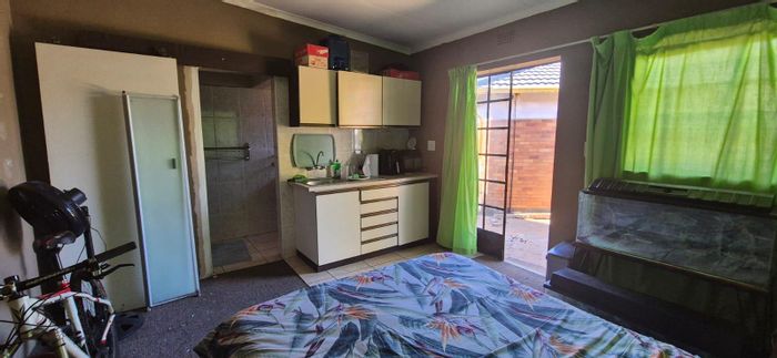 4 bedrooms, 1 bathroom, 2 covered parking spaces, bachelor flat with en-suite, large workshop, and swimming pool.