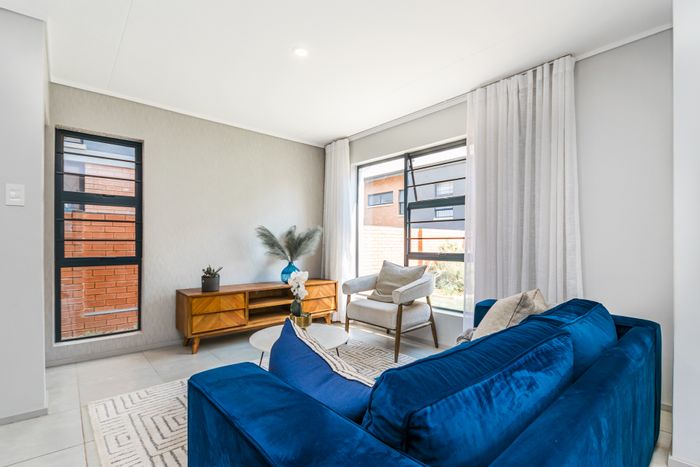 Family-friendly living in gated Amberfield Glen, Centurion — walk to Amberfield College and Reds Mall. Open-plan, sunlit home with private garden, two automated garages, three bedrooms.