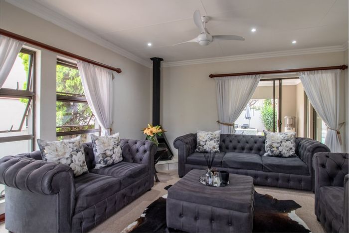 Entertainer's haven in prestigious Bushwillow Park Estate, offering secure, family-friendly living with a solar-heated pool and water feature, covered veranda and double automated garage; four bedrooms, three bathrooms.