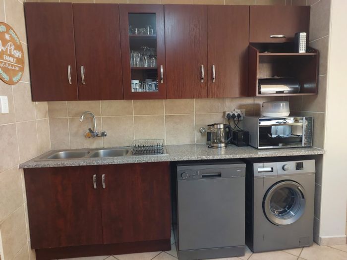Modern family home in Brentwood Park’s exclusive, secure estate, minutes from shops and schools; granite kitchen, covered patio with folding doors and built‑in braai, inverter/solar backup, 3-bed, 2-bath, double garage.