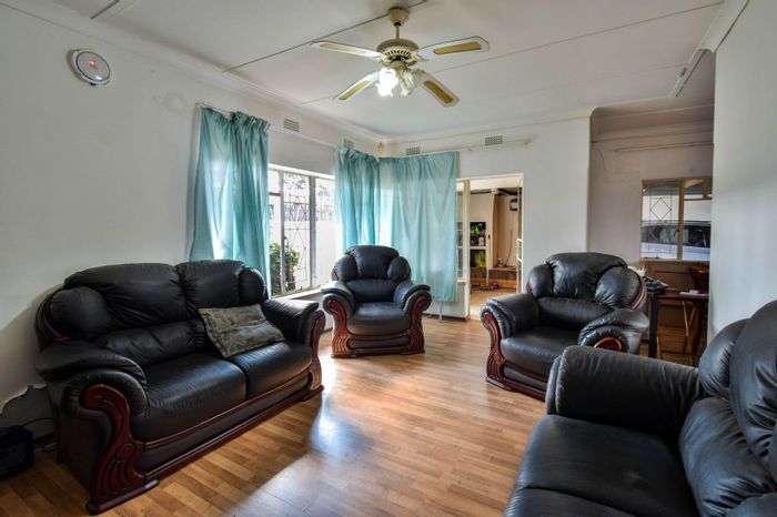 Relaxed family living on a quiet road off Viljoen Street, featuring a spacious garden and built-in braai in the converted room — ideal renovation project; three bedrooms, one bathroom, garage.