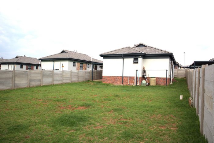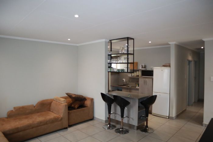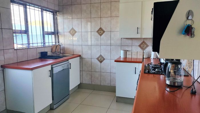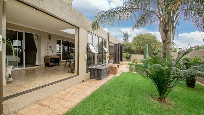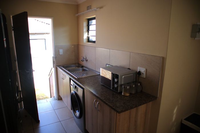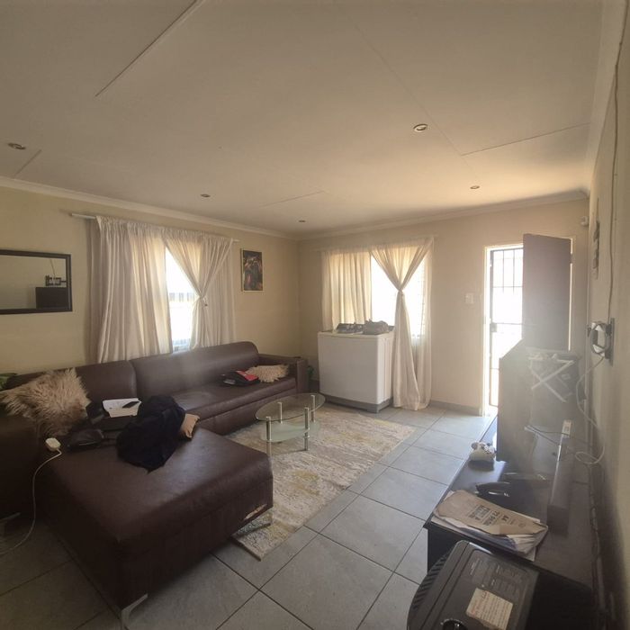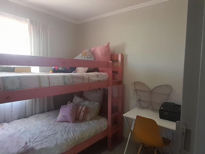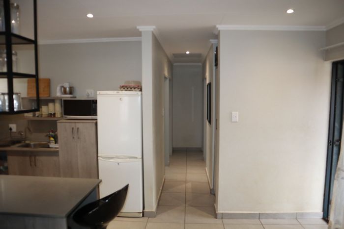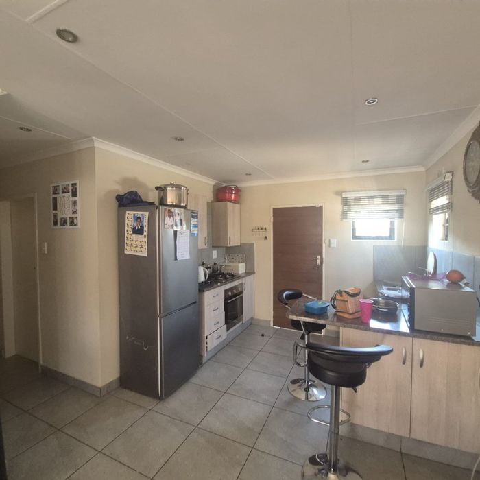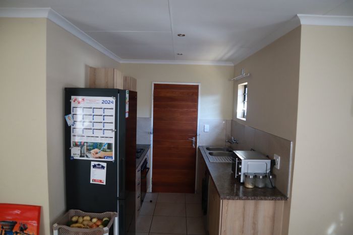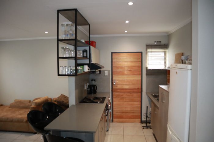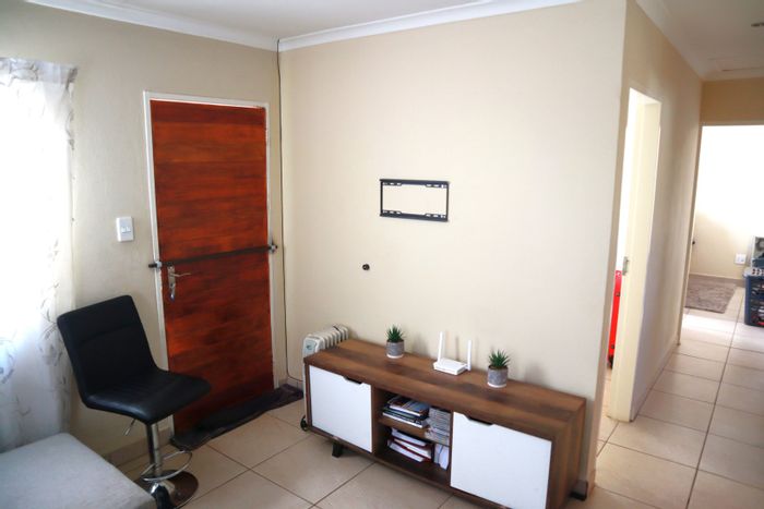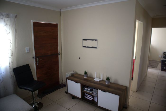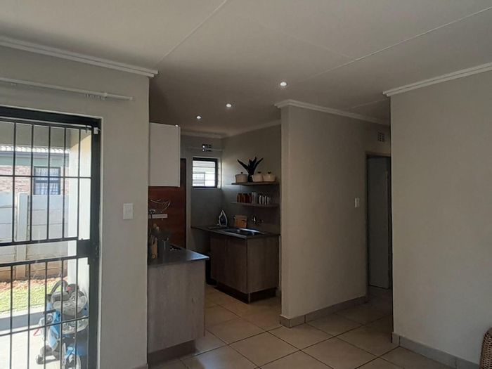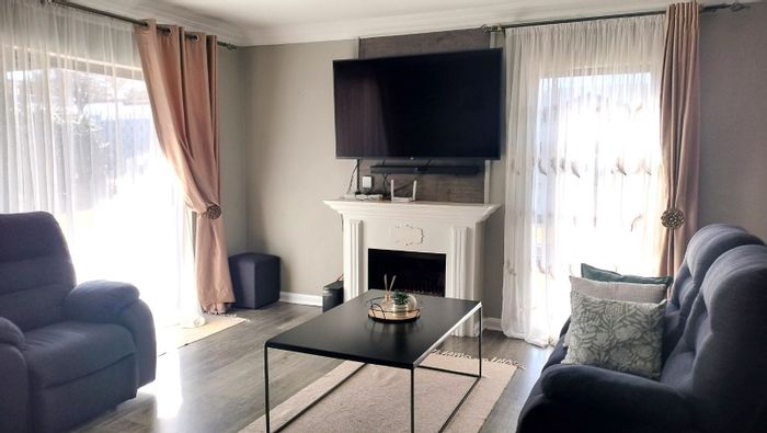 Relaxed living in a secure, family-friendly estate with an open-plan lounge and modern kitchen flowing to a private paved yard ideal for braais; three beds, two baths, double garage.