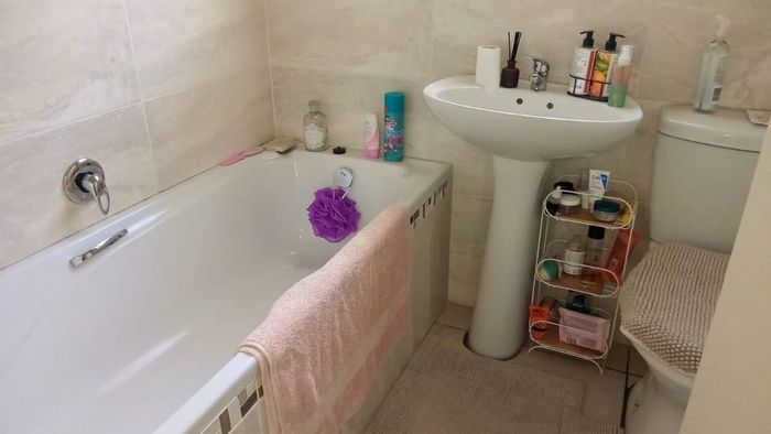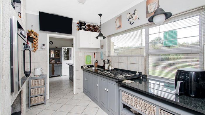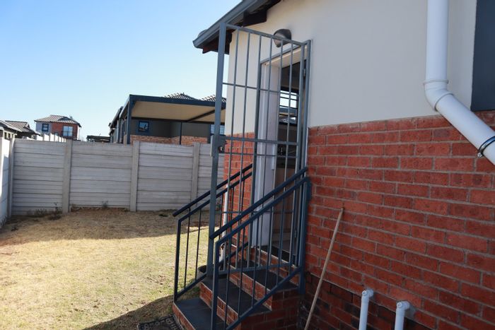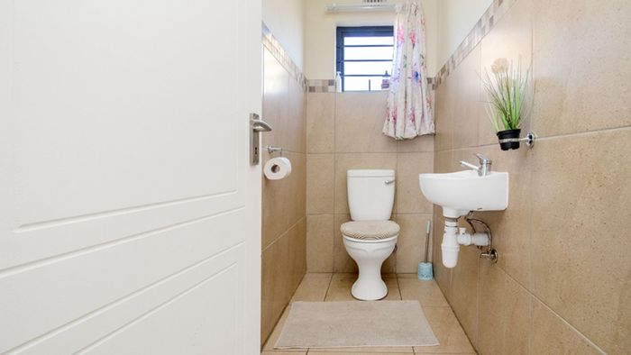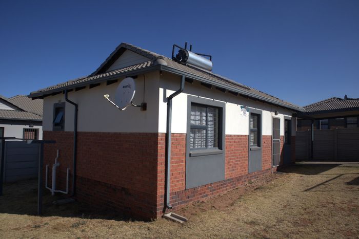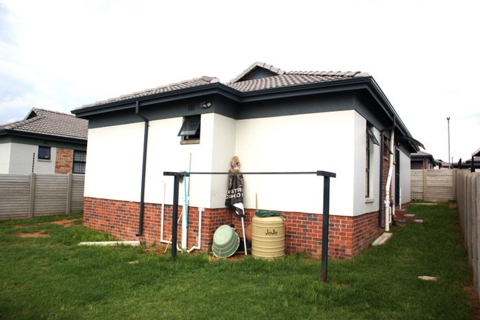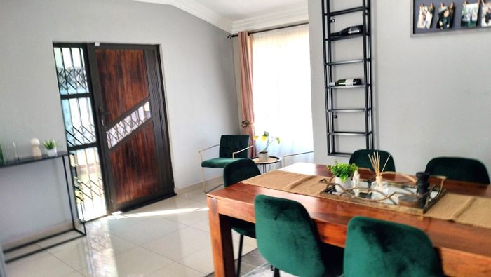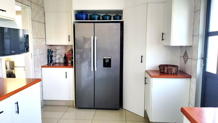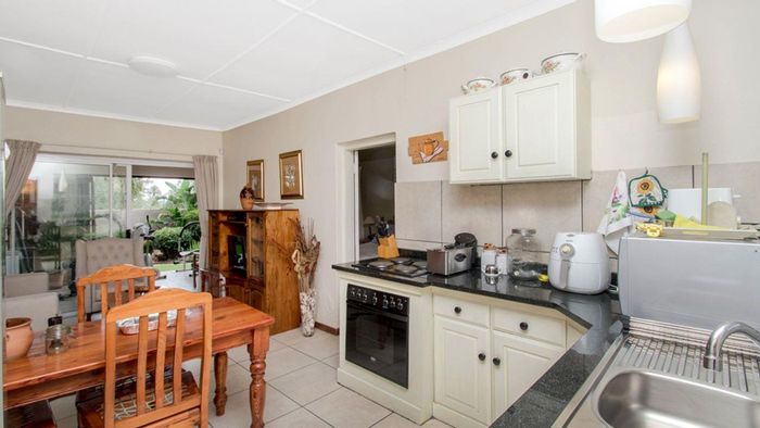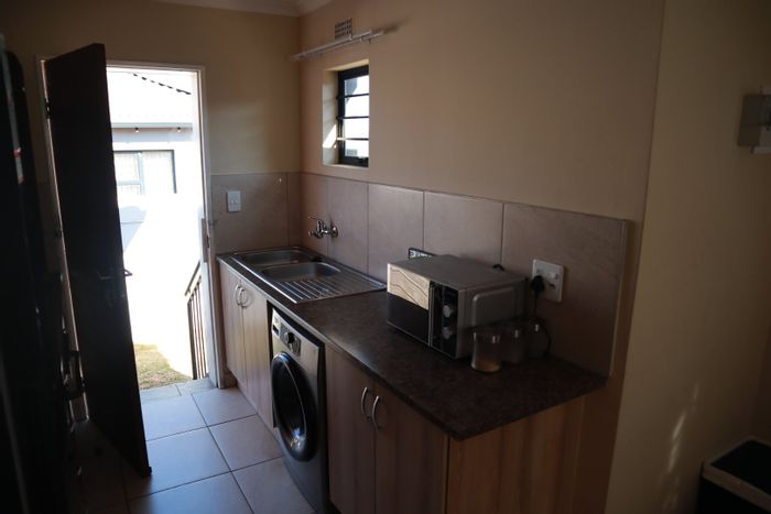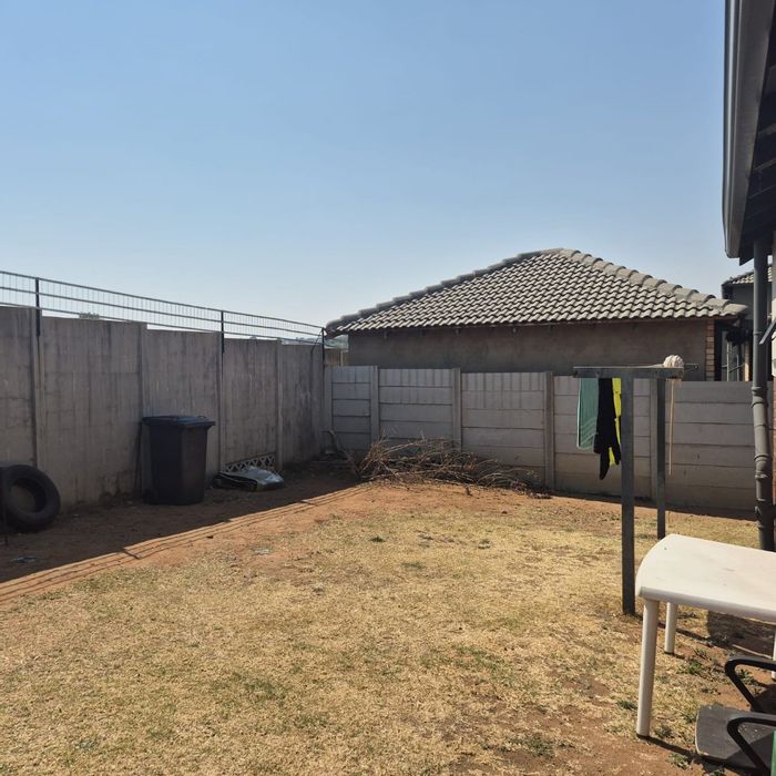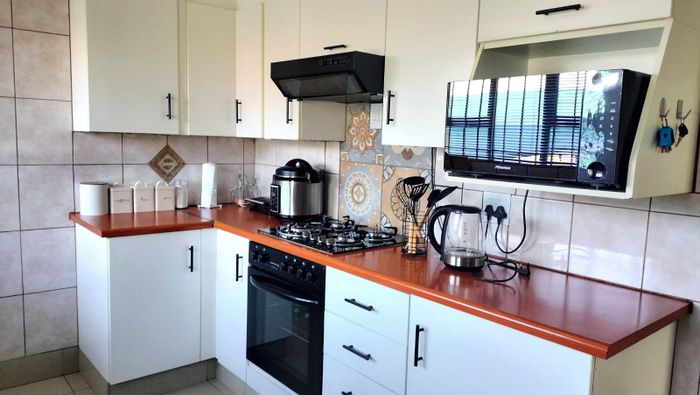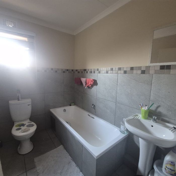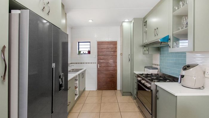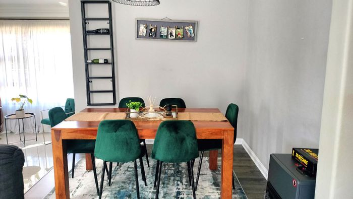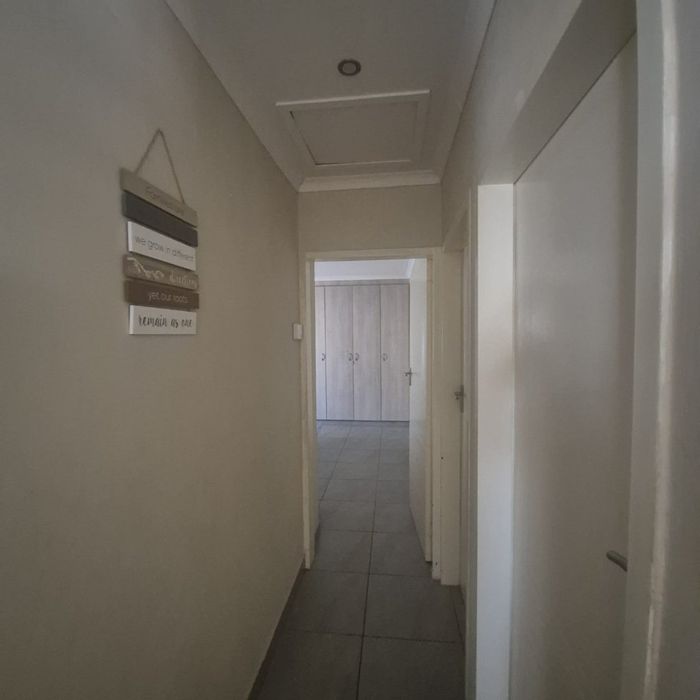Relaxed living in a secure, family-friendly estate with an open-plan lounge and modern kitchen flowing to a private paved yard ideal for braais; three beds, two baths, double garage.