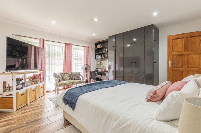 Entertain effortlessly in Noordheuwel’s coveted street — family-focused living with pool, bar and braai, spacious garden and flatlet; six bedrooms, 4.5 baths and double garage.