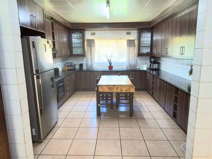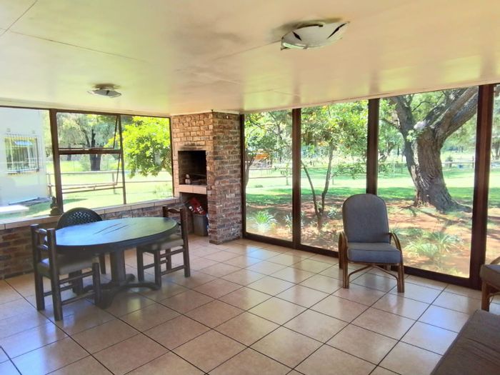 Move-in ready family home for effortless entertaining in Meyerton Ext 6, featuring an indoor braai under a large skylight, paved pool terrace, four bedrooms and five automated garages.