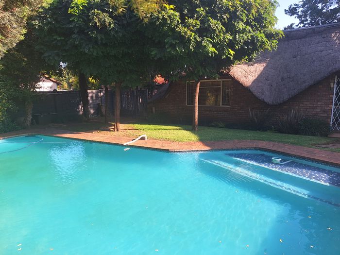 Entertainer's haven with peaceful privacy in exclusive Meyerton Extension 6, manicured garden and heated pool, plus separate 180m² loft with jacuzzi. Four beds, three baths, double garage.