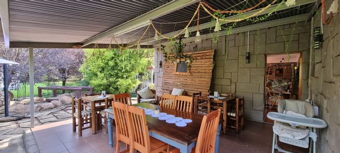 Entertainer's retreat on 1.4ha in Meyerton countryside, featuring lush gardens and a sparkling pool, on-site coffee shop and 200m² workshop — six bedrooms, 4.5 baths.